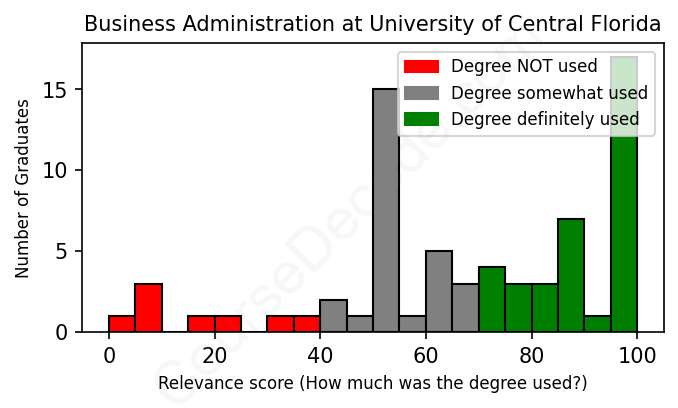 First, some facts. Of the Business Administration graduates from University of Central Florida we've analyzed , here's how many have used (or NOT used) their degree in their career: