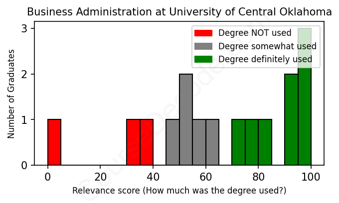 First, some facts. Of the Business Administration graduates from University of Central Oklahoma we've analyzed , here's how many have used (or NOT used) their degree in their career: