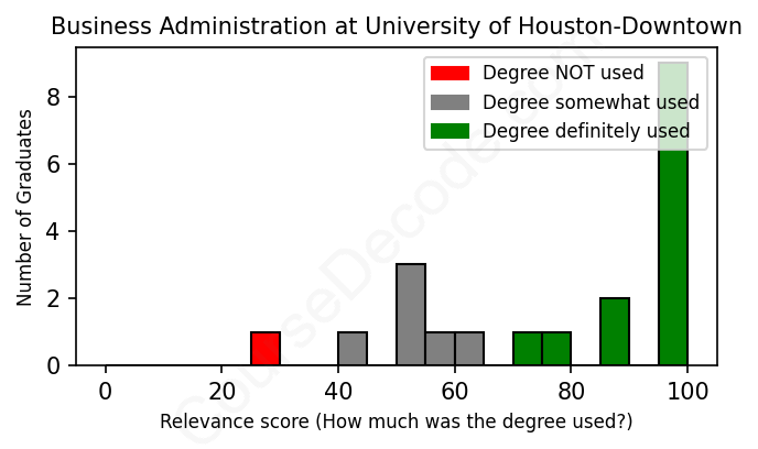 First, some facts. Of the Business Administration graduates from University of Houston-Downtown we've analyzed , here's how many have used (or NOT used) their degree in their career: