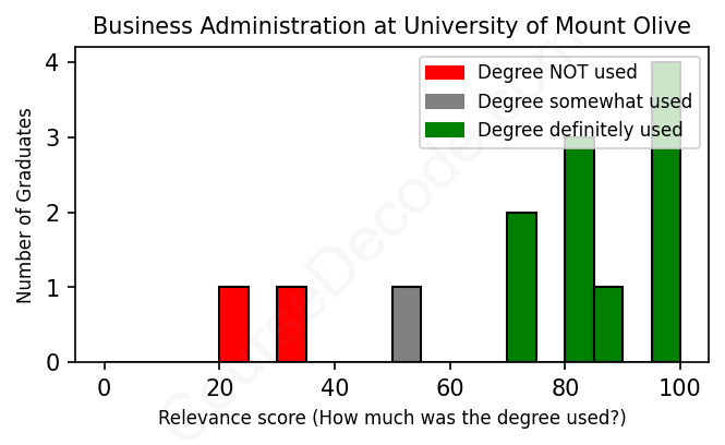 First, some facts. Of the Business Administration graduates from University of Mount Olive we've analyzed , here's how many have used (or NOT used) their degree in their career:
