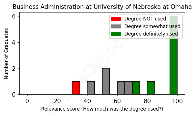 First, some facts. Of the Business Administration graduates from University of Nebraska at Omaha we've analyzed , here's how many have used (or NOT used) their degree in their career: