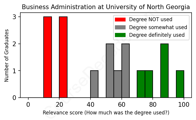 First, some facts. Of the Business Administration graduates from University of North Georgia we've analyzed , here's how many have used (or NOT used) their degree in their career: