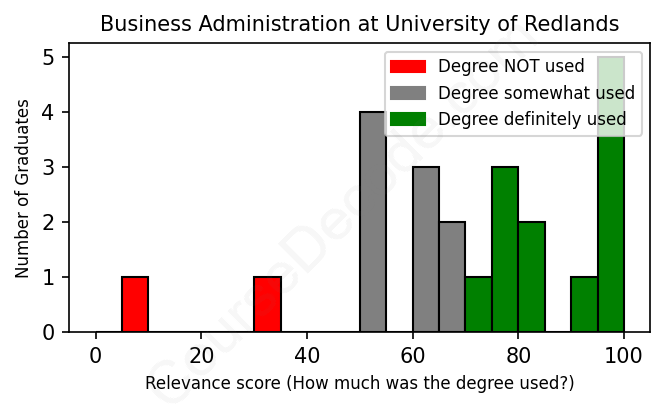 First, some facts. Of the Business Administration graduates from University of Redlands we've analyzed , here's how many have used (or NOT used) their degree in their career: