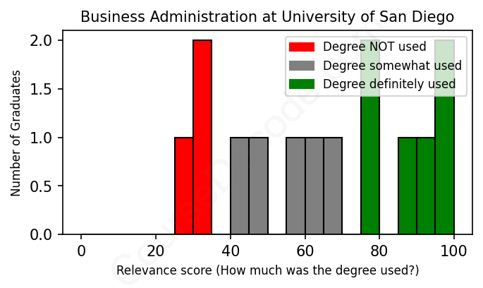 First, some facts. Of the Business Administration graduates from University of San Diego we've analyzed , here's how many have used (or NOT used) their degree in their career: