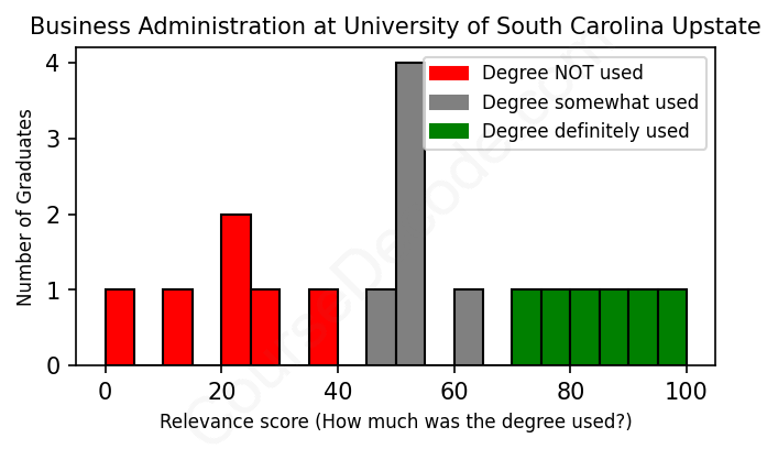 First, some facts. Of the Business Administration graduates from University of South Carolina Upstate we've analyzed , here's how many have used (or NOT used) their degree in their career: