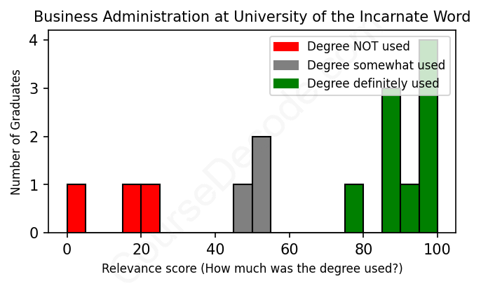 First, some facts. Of the Business Administration graduates from University of the Incarnate Word we've analyzed , here's how many have used (or NOT used) their degree in their career: