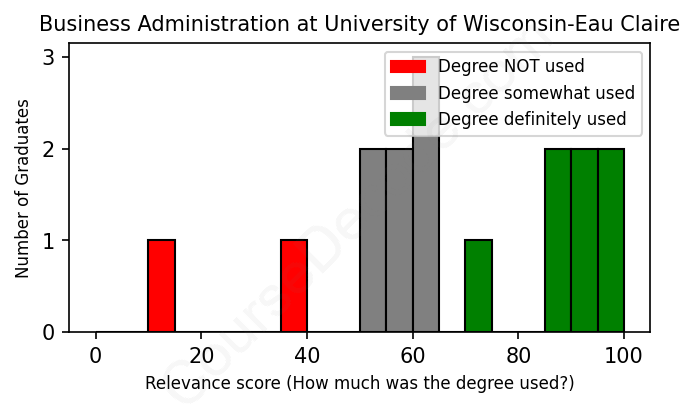 First, some facts. Of the Business Administration graduates from University of Wisconsin-Eau Claire we've analyzed , here's how many have used (or NOT used) their degree in their career: