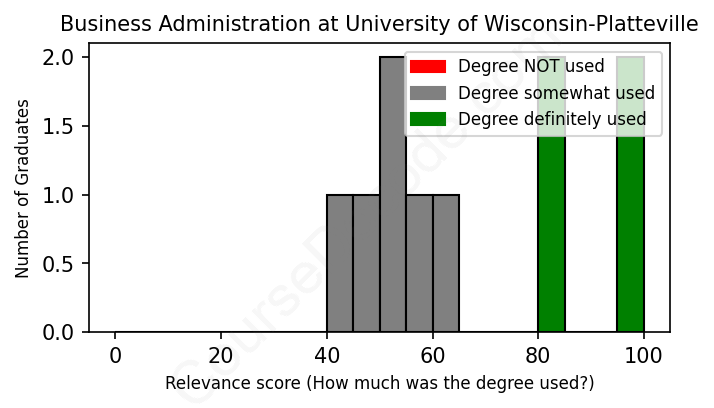 First, some facts. Of the Business Administration graduates from University of Wisconsin-Platteville we've analyzed , here's how many have used (or NOT used) their degree in their career: