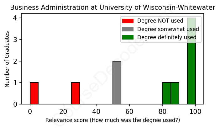 First, some facts. Of the Business Administration graduates from University of Wisconsin-Whitewater we've analyzed , here's how many have used (or NOT used) their degree in their career: