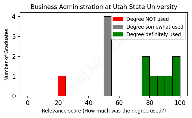 First, some facts. Of the Business Administration graduates from Utah State University we've analyzed , here's how many have used (or NOT used) their degree in their career: