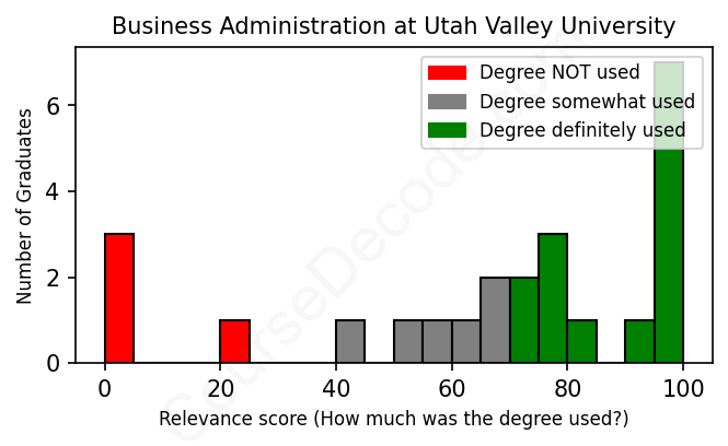 First, some facts. Of the Business Administration graduates from Utah Valley University we've analyzed , here's how many have used (or NOT used) their degree in their career: