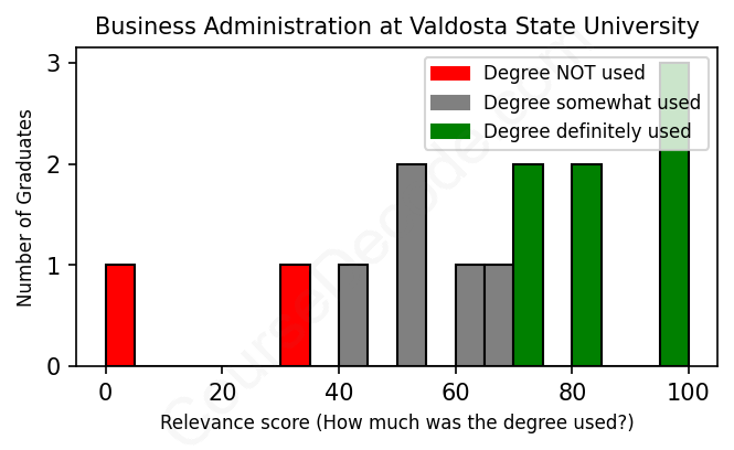 First, some facts. Of the Business Administration graduates from Valdosta State University we've analyzed , here's how many have used (or NOT used) their degree in their career:
