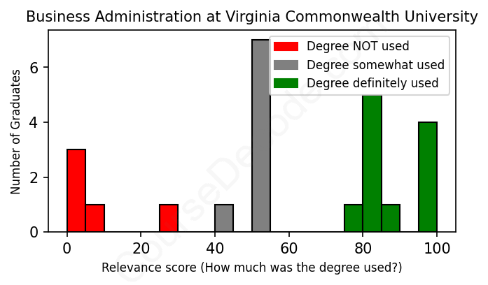First, some facts. Of the Business Administration graduates from Virginia Commonwealth University we've analyzed , here's how many have used (or NOT used) their degree in their career: