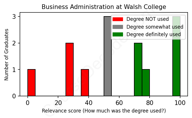 First, some facts. Of the Business Administration graduates from Walsh College we've analyzed , here's how many have used (or NOT used) their degree in their career: