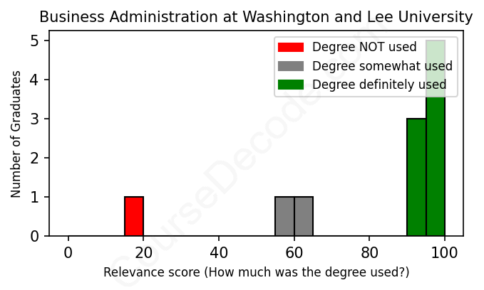 First, some facts. Of the Business Administration graduates from Washington and Lee University we've analyzed , here's how many have used (or NOT used) their degree in their career: