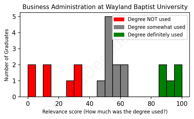 First, some facts. Of the Business Administration graduates from Wayland Baptist University we've analyzed , here's how many have used (or NOT used) their degree in their career: