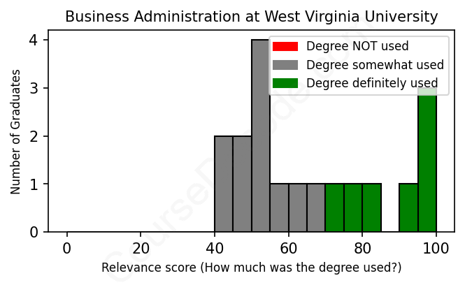 First, some facts. Of the Business Administration graduates from West Virginia University we've analyzed , here's how many have used (or NOT used) their degree in their career:
