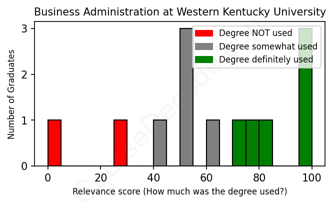 First, some facts. Of the Business Administration graduates from Western Kentucky University we've analyzed , here's how many have used (or NOT used) their degree in their career: