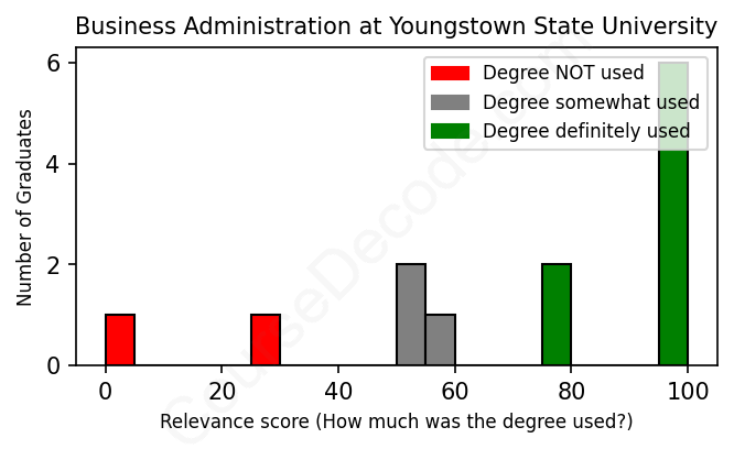First, some facts. Of the Business Administration graduates from Youngstown State University we've analyzed , here's how many have used (or NOT used) their degree in their career: