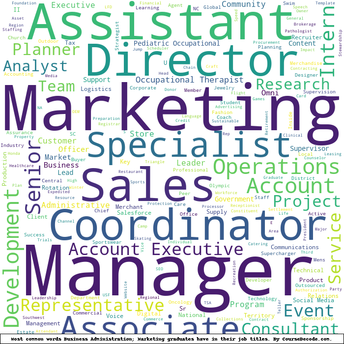 Here is a visual representation of the most common words in job titles for Business Administration, Marketing graduates: