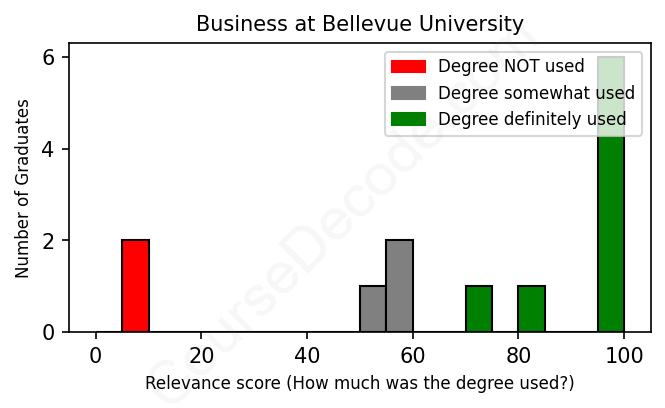 First, some facts. Of the Business graduates from Bellevue University we've analyzed , here's how many have used (or NOT used) their degree in their career: