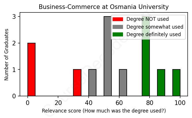 First, some facts. Of the Business-Commerce graduates from Osmania University we've analyzed , here's how many have used (or NOT used) their degree in their career:
