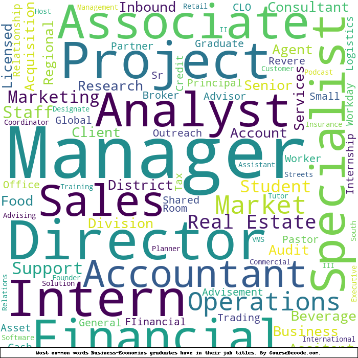 Here is a visual representation of the most common words in job titles for Business Economics graduates: