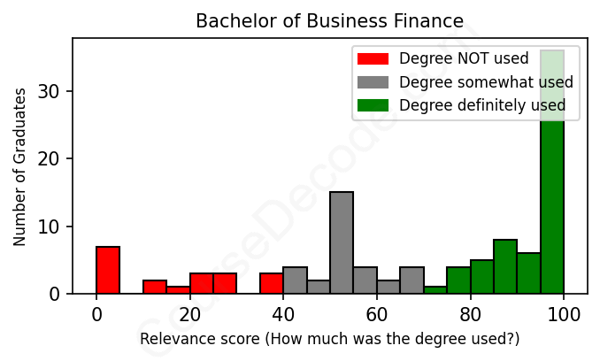 First, some facts. Of the Business Finance graduates we've analyzed , here's how many have used (or NOT used) their degree in their career: