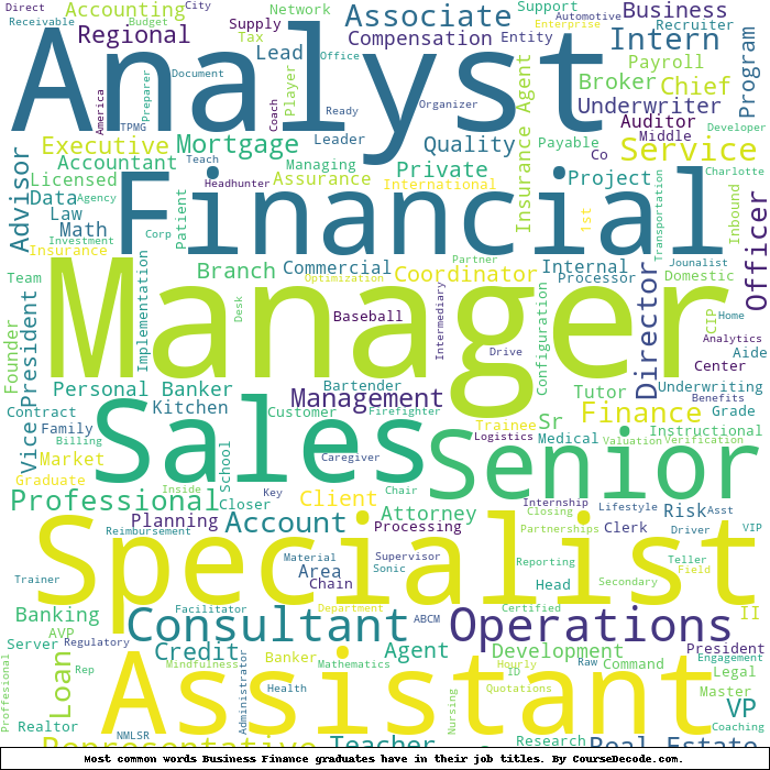 Here is a visual representation of the most common words in job titles for Business Finance graduates: