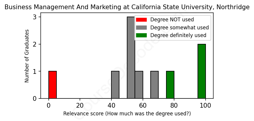 First, some facts. Of the Business Management And Marketing graduates from California State University, Northridge we've analyzed , here's how many have used (or NOT used) their degree in their career:
