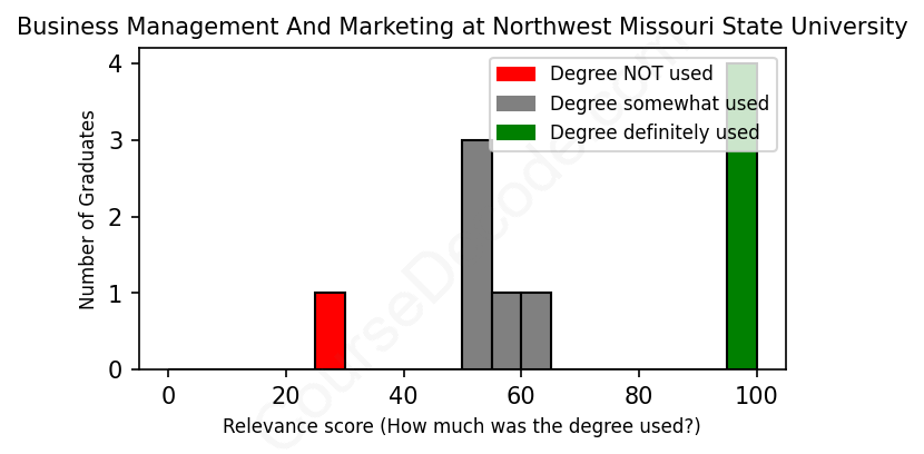 First, some facts. Of the Business Management And Marketing graduates from Northwest Missouri State University we've analyzed , here's how many have used (or NOT used) their degree in their career: