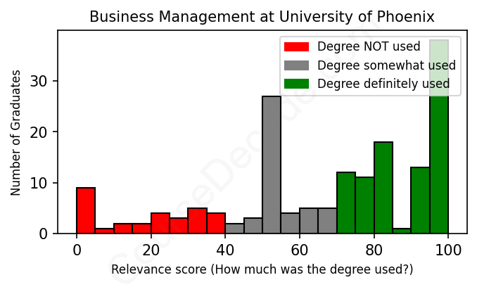 First, some facts. Of the Business Management graduates from University of Phoenix we've analyzed , here's how many have used (or NOT used) their degree in their career: