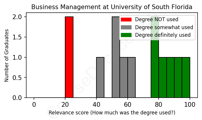 First, some facts. Of the Business Management graduates from University of South Florida we've analyzed , here's how many have used (or NOT used) their degree in their career: