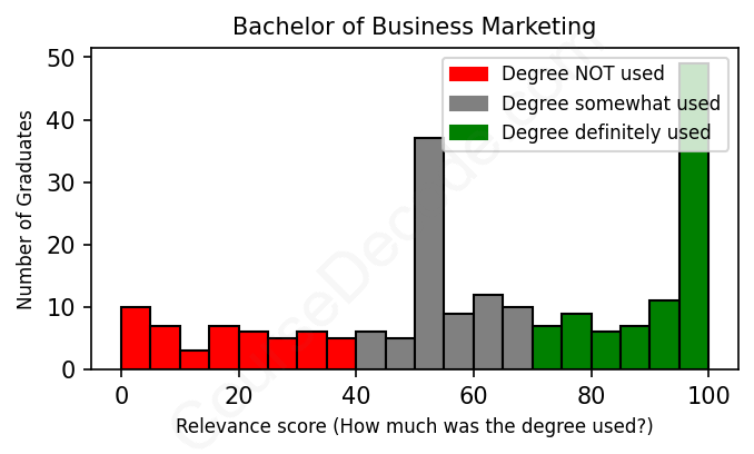 First, some facts. Of the Business Marketing graduates we've analyzed , here's how many have used (or NOT used) their degree in their career: