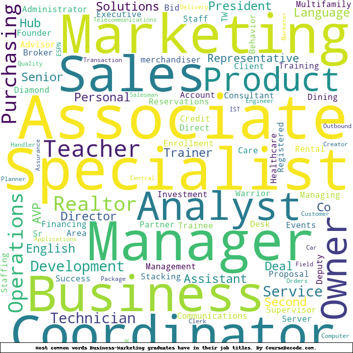 Here is a visual representation of the most common words in job titles for Business Marketing graduates: