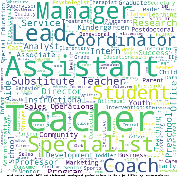 Here is a visual representation of the most common words in job titles for Child and Adolescent Development graduates: