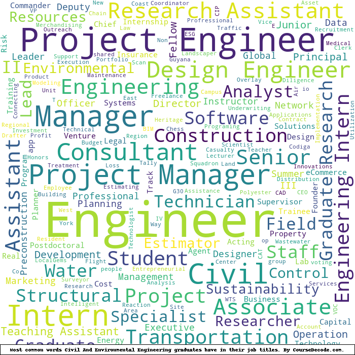 Here is a visual representation of the most common words in job titles for Civil And Environmental Engineering graduates: