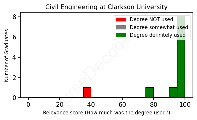 First, some facts. Of the Civil Engineering graduates from Clarkson University we've analyzed , here's how many have used (or NOT used) their degree in their career: