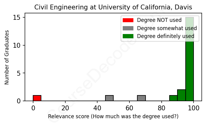 First, some facts. Of the Civil Engineering graduates from University of California, Davis we've analyzed , here's how many have used (or NOT used) their degree in their career: