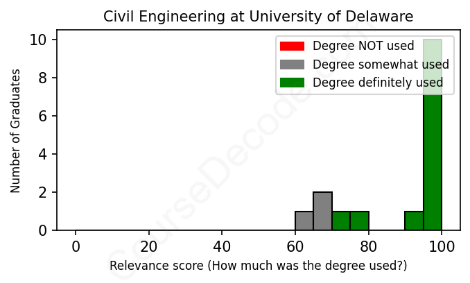 First, some facts. Of the Civil Engineering graduates from University of Delaware we've analyzed , here's how many have used (or NOT used) their degree in their career:
