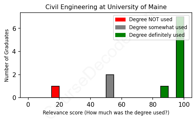 First, some facts. Of the Civil Engineering graduates from University of Maine we've analyzed , here's how many have used (or NOT used) their degree in their career: