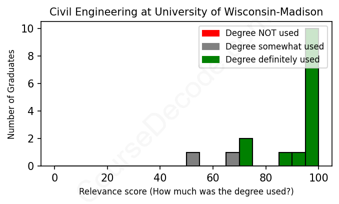 First, some facts. Of the Civil Engineering graduates from University of Wisconsin-Madison we've analyzed , here's how many have used (or NOT used) their degree in their career: