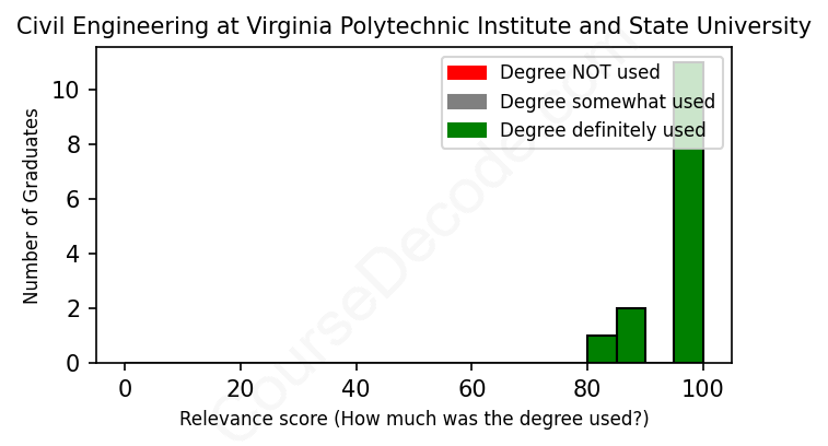 First, some facts. Of the Civil Engineering graduates from Virginia Polytechnic Institute and State University we've analyzed , here's how many have used (or NOT used) their degree in their career: