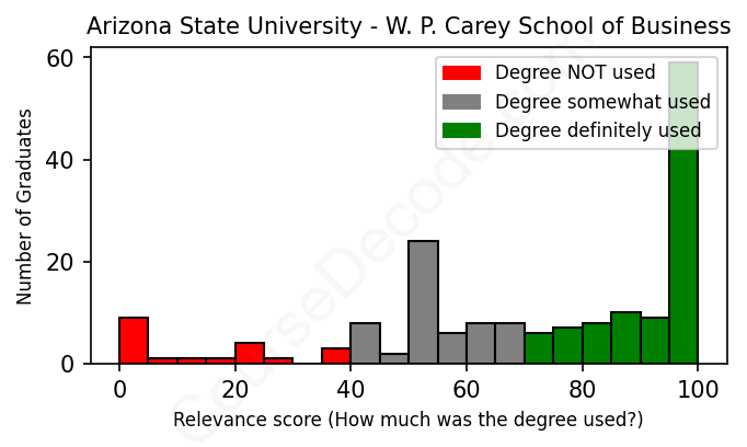 Of all the Arizona State University - W. P. Carey School of Business graduates we've analyzed, here's how many have used (or NOT used) their degree in their career according to our analysis: