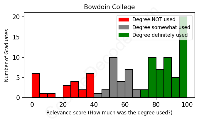 Of all the Bowdoin College graduates we've analyzed, here's how many have used (or NOT used) their degree in their career according to our analysis: