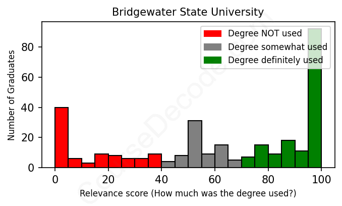 Of all the Bridgewater State University graduates we've analyzed, here's how many have used (or NOT used) their degree in their career according to our analysis: