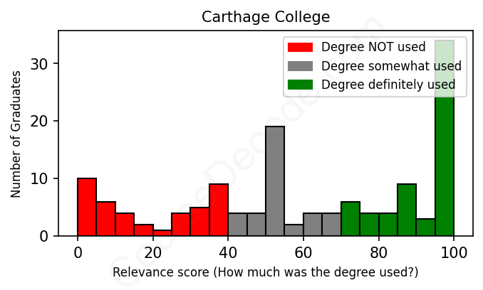 Of all the Carthage College graduates we've analyzed, here's how many have used (or NOT used) their degree in their career according to our analysis: