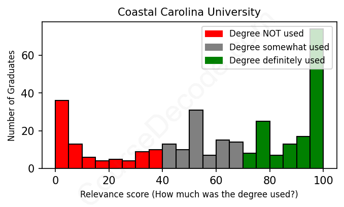 Of all the Coastal Carolina University graduates we've analyzed, here's how many have used (or NOT used) their degree in their career according to our analysis: