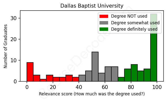 Of all the Dallas Baptist University graduates we've analyzed, here's how many have used (or NOT used) their degree in their career according to our analysis: