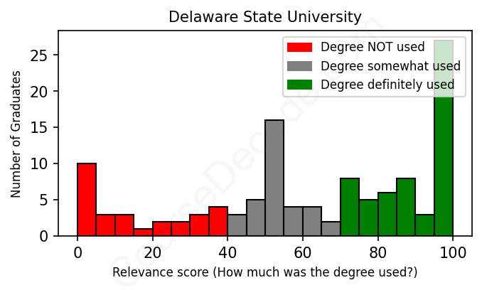 Of all the Delaware State University graduates we've analyzed, here's how many have used (or NOT used) their degree in their career according to our analysis: